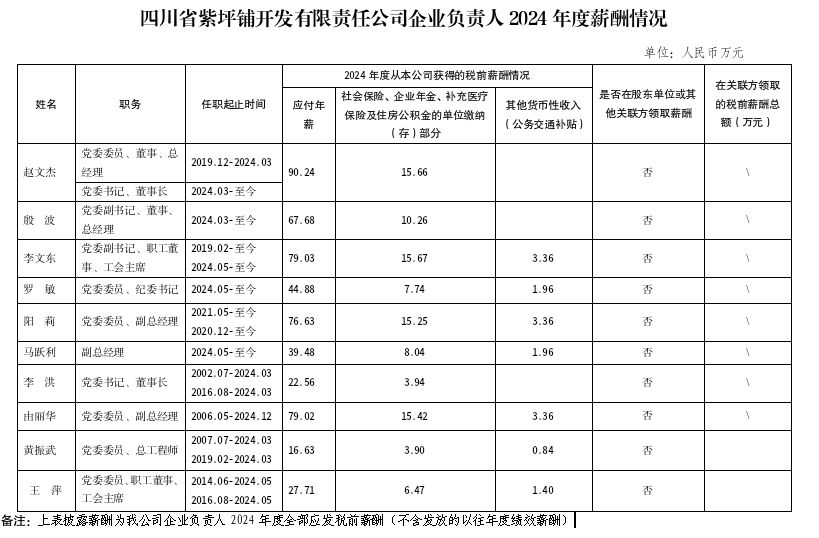 四川省紫坪鋪開發(fā)有限責任公司企業(yè)負責人2024年度薪酬情況