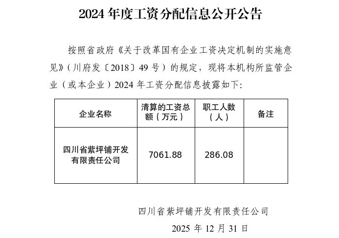 2024年度工資分配信息公開公告